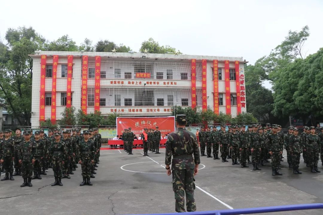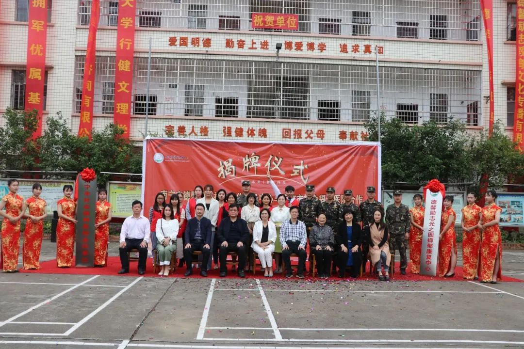 原南宁市政法委副书记谭尚武、南宁市社会福利医院副院长张春林,南宁市社会福利医院心身科护士长梁玉碧,南宁市社会福利医院、广西心理卫生协会秘书长伍业光教授,中国心理卫生协会大学生心理咨询专业委员会委员、广西心理卫生协会专家委员会委员刘惠珍,南宁市心理咨询协会会长刘玉萍,南宁市德馨励志社会工作服务中心理事长莫姿燕,广西德馨励志教育校长刘卫平,副校长梁燕妮,心理组主任彭丽蓉,总教官梁道雄,以及德馨励志教育全体师生参加了签约揭牌仪式。